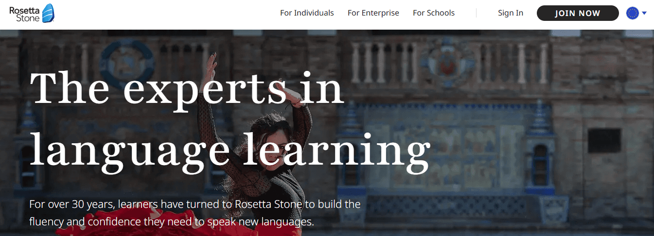 Rosetta Stone emphasizes complete immersion and listening to native speakers to force mental mapping between image and word. The platform offers interactive activities and simulated real-life situations assisted by AI, so you learn through context rather than translation.